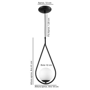 Pendente Aro Orby  O Pendente Aro Orby ganha espaço na decoração de interiores, permitindo a valorização do espaço e um ambiente mais acolhedor.Com linhas simples, delicadas e design moderno, a luminária pode ser instalada em diversos ambientes internos de sua casa.   ESPECIFICAÇÕES   Material:   Vidro/Metal   Indicação:   Iluminação interna e decoração     Dados Técnicos:   -Alimentação: Bivolt   -Tipo de lâmpada: 1 x E27 Lâmpada Bolinha. (não inclusas)   -Peso Aprox. com embalagem: 0,400kg   -Dimensões aprox. do produto 12x12cm (Bola)   -Aprox. 1,2 Metro de Fio PP .   -Canopla de Fixação de 12cm de diâmetro.