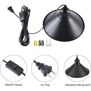 Estilo: Moderno/Industrial/Quinta Materiais: Metal Cor: Preto Dossel: 12 cm de diâmetro x 2,5 cm A Corpo da lâmpada: 18 cm de diâmetro x 17,78 cm A Comprimento do cabo: 150 cm (ajustável) Peso da lâmpada: 700 g. Lâmpadas: 1*60W E26 (lâmpadas não incluídas) Tensão: 110-120V Locais adequados: apenas uso interno Aviso: Sugerimos a instalação por um eletricista licenciado. - Esta luminária pendente com acabamento preto fosco combina casa de fazenda moderna e industrial, formato de abajur de cone elegante, design de pequeno orifício no abajur, não apenas pode dissipar o calor, mas também adicionar a beleza elegante do vazamento de luz. - Disponível para teto plano e teto ligeiramente inclinado. Os candelabros para salas de jantar têm um cabo ajustável de 150 cm para altura. - Acessórios e instruções de instalação incluídos, traz facilmente à sua casa interior um toque de glamour. Adequado para pia de cozinha, bar, pia de cozinha, sala de jantar, sala de estar, hall de entrada, corredor, etc. - Use a lâmpada E26 de sua escolha (LED, CFL, incandescente ou halogênio), fica ótimo com lâmpadas Edison antigas, máx. 60 W (não incluídas). - Equipado com metal fundido resistente, você não precisa se preocupar com problemas de envelhecimento, dobra ou desbotamento da cor. Se você tiver alguma dúvida sobre nossos produtos, .
