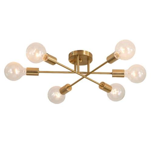 A luminária de teto semi-embutida dá um toque moderno ao estilo retrô com uma base dourada exclusiva e uma barra de metal dourado fosco de estilo retrô. Com um design giratório flexível, ele emite um brilho aconchegante e cria uma sensação aconchegante que complementa perfeitamente a decoração da sua casa. Esta luz funciona com todos os tipos de lâmpadas E27, como lâmpadas incandescentes, halógenas, LED ou coloridas RGB. A potência máxima de cada lâmpada é de 60W, mas é recomendável usar lâmpadas menores que 40W, porque quando 6 lâmpadas são ligadas juntas, a sala fica iluminada o suficiente. (As lâmpadas não estão incluídas no pacote.) Fácil de instalar: esta lâmpada vem pré-instalada e a embalagem inclui todo o hardware de montagem, facilitando a instalação no teto. Todo o hardware e as instruções necessários estão incluídos para uma instalação rápida e fácil. Amplamente utilizada: a colisão de luxo moderno e textura retrô, com uma tela requintada e um design retrô de base fosca, a luminária de teto semi-embutida é ideal para corredores, entradas, varandas, escadas, cozinhas, armários, quartos infantis, salas de jantar, quartos, salas de estar. Também é adequado para áreas comerciais, como bares, cafés, hotéis e restaurantes, etc. Você pode escolher o local de instalação de acordo com suas necessidades reais. Aviso: 1. As lâmpadas não estão incluídas no pacote. Recomendamos a instalação por um eletricista autorizado. Certifique-se de desconectar a energia antes da instalação, manutenção, reparo, limpeza, etc.4. Não conecte a fonte de alimentação até que a lâmpada esteja totalmente montada. Mantenha-o longe de materiais inflamáveis. Limpe com um pano macio e seco ou com um pano eletros. Parâmetro: Tipo: Luz de teto moderna semi-capacitada\ Tensão de entrada: 220 V Potência: até 60 W para base única\ nDimensões: Diâmetro 54,5 cm (sem lâmpada), até 26,5 cm\ nLâmpadas aplicáveis: E27 (LED/incandescente/CFL/lâmpada halógena/lâmpada inteligente)\ nMaterial principal: MetalEstilo: Design moderno e industrial. Lista de embalagem: 1 x semi-oculta1 luz de teto × kits de acessórios básicos1 x manual de instalação