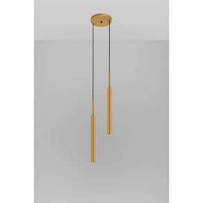 Luminária Pendente De Teto Tubo Duplo Sala Balcão Dourado