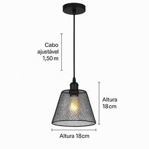 Luminária Pendente Decorativo em Tela Metal Preto 1,50cm Pendente Decorativo em Cobre Tela Metal Mesh Preto Transforme qualquer ambiente com charme e modernidade O pendente em cobre com tela mesh é perfeito para compor salas, quartos, varandas, cozinhas ou áreas gourmet, trazendo um toque sofisticado e aconchegante. Destaques do produto: Design elegante com acabamento em cobre, fácil de harmonizar com diferentes estilos de decoração. Estrutura em tela metálica, que valoriza a luz e cria um efeito visual diferenciado. Compatível com lâmpadas E27 não inclusa . Cabo ajustável de até 1,50 m, adaptável à altura desejada. Dimensões da cúpula: 18 cm altura x 20 cm largura . Ideal para quem busca iluminação decorativa e personalidade no ambiente. dê um toque único ao seu espaço com este pendente exclusivo O produto é novo Sim, todos os produtos são novos. Caso o produto não supra minha necessidade posso devolver ou trocar O produto tem Sim, todos os produtos têm . Se ainda houver alguma dúvida estamos a disposição para responder de segunda-feira a sexta-feira das 08:00 às 17:30. Marca: Não Informado