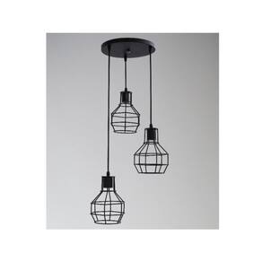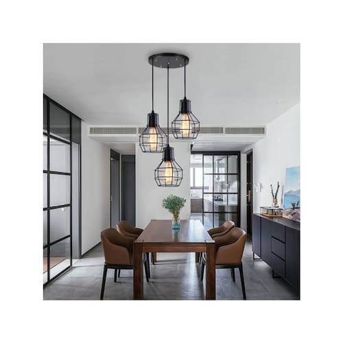 Ferrara é uma luminária pendente industrial simples, mas muito decorativa, de estilo vintage, com corpo metálico preto. Em cada uma de suas três tulipas em forma de grade, há um esguicho tipo E27, onde é recomendável usar frascos vintage que podem ser ST64 ou A60 (não incluídos, visite nossa seção de ampolas). Dimensões; cada abajur tem um diâmetro de 15 cm e uma altura de 20 cm, seu cabo permite regular a altura até um máximo de 90 cm, pendurado em uma base redonda de 25 cm de diâmetro.
