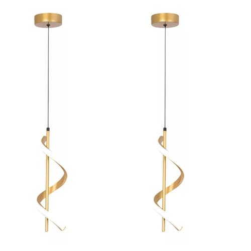 Luminária pendente formato espiral dourado KIT COM 2 UNIDADES