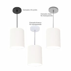 Luminária Pendente Free Lux Md-4104 para Decoração Interna com Cúpula em Tecido Branca Canopla Cinza Fio Cristal Vivare