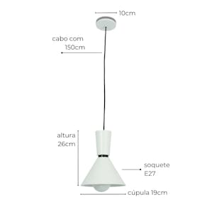 Fabricante: Lumim, BrasilDesigner: Lumim A luminária pendente Golda é uma excelente opção para projetos que buscam um design clean e funcional. Sua estrutura em alumínio e ferro, com pintura eletrostática, garante durabilidade e resistência à corrosão. O soquete E27 permite a utilização de diversas opções de lâmpadas LED, proporcionando flexibilidade na criação de diferentes cenários de iluminação. A versatilidade da Golda a torna uma peça chave em projetos comerciais e residenciais, é ideal para projetos que buscam destacar o bom gosto e a modernidade. Seja em ambientes clássicos ou contemporâneos, ela se adapta a diversos estilos de decoração. Tipo de Lâmpada: LED (não acompanha lâmpada), ideal para proporcionar uma iluminação suave.Tensão: Bivolt automática, pronta para uso em qualquer tipo de rede elétrica.Cabo com Plug e Interruptor: Cabo de 150 cm revestido em tecido, que adiciona um toque de sofisticação e praticidade na instalação.Cuidados e Manutenção: Para preservar a luminária, utilize um pano seco e macio para limpeza. Evite o uso de produtos abrasivos e solventes que possam danificar o acabamento.