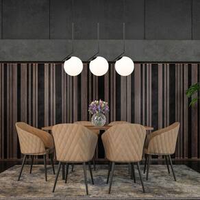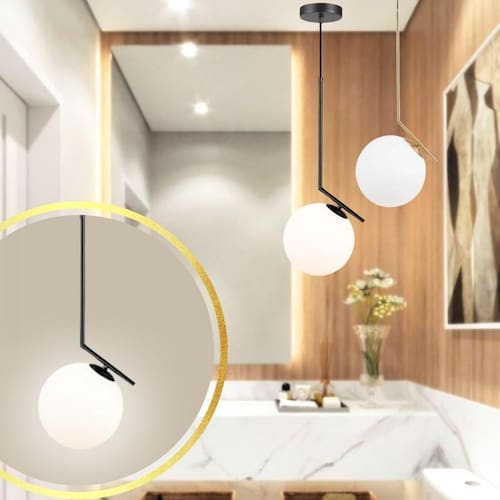 O globo é de vidro na cor branco leitoso fosco com 15cm de diâmetro e uma abertura inferior de 6,5cm para troca da lâmpada e encaixe na estrutura metálica. O corpo da luminária com o globo tem 45cm de altura, 15cm de profundidade e 20cm de largura. Capacidade para 1 lâmpada E27 até 60 Watts de potência. A fiação é na cor preta e possui 155cm, regulável, o que permite o ajuste de altura na medida perfeita em relação ao teto. É compatível com tensão Bivolt, para ligação na corrente elétrica 110v / 220v. Já acompanha base de sobrepor em metal com 10cm de diâmetro x 2cm de altura, no mesmo tom de cor da luminária. Por fim, para maior praticidade e conveniência na instalação, segue com um kit fixação com travessa, parafusos, buchas e arruelas.
