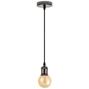 Luminária Pendente Retro Vintage De Metal E Fio PP Com Lâmpada Formato Globo Com Filamento Led G95 Cor 2300K Âmbar Cor: Preto/Cinza Luminária pendente retro vintage com lâmpada formato globo âmbar, traz Estilo para sua casa, beleza e aconchego. Especificação do Pendente: - Bocal: Metal por fora e por dentro E27 4A 250V T210. possui Rosca Inferior para Adaptação em outras Luminárias - Base para fixação no teto: Metal - Fio PP com Acabamento em Tecido - Tampa redonda: Metal - Voltagem: Bivolt - Tampa com Ajustador de Altura - Acompanha Peças para montagem e Instalação do Produto - Peso do pendente: Cada pendente pesa aproximadamente 163 gramas - Medidas do Pendente: 1 metro de ponta a ponta Especificação da Lâmpada: - Modelo da Lâmpada: Lâmpada de filamento LED G95/E27 - Potência: 4W - Lúmens: 120lm/W - Voltagem: Bivolt - Temperatura da lâmpada: 2300K Âmbar - Peso da Lâmpada: O Cada lâmpada pesa aproximadamente 57 gramas - Medidas do Pendente: Diâmetro:9,5cm x Altura:14cm Itens inclusos no kit: - 1 Pendente/Bocal com fio - 4 Parafusos - 2 Buchas de parafusos - 1 Base de metal para fixação no teto - 1 Tampa - 1 Pino de tampa com rosca - 1 Lâmpada formato globo âmbar Marca: Pendente Com Lâmpada