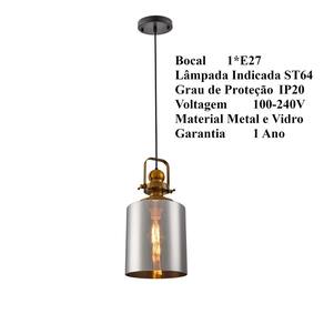 Luminária Pendente Lustre Metal Vidro Tion VAS Ouro Fume Não acompanha Lâmpada A combinação perfeita de iluminação e design. Esta luminária dará vida aos seus espaços para que você possa aproveitá-los ao máximo. Além disso, você pode personalizar seus cantinhos favoritos e dar-lhes detalhes diferenciados. Esse pendente é a escolha perfeita para quem deseja unir design e funcionalidade. Não perca a oportunidade de trazer mais sofisticação ao seu espaço. Design Exclusivo: Com um design que mescla o estilo escandinavo com toques modernos, ele se torna o centro das atenções em qualquer espaço. Iluminação Aconchegante: Proporciona uma luz suave, perfeita para criar um ambiente acolhedor e confortável. Durabilidade e Qualidade: Feito com materiais de alta qualidade, garantindo durabilidade e resistência ao tempo. Especificações Técnicas: Não acompanha Lâmpada Dimensões AxLxP mm : 460x230x230; Cor: Ouro Fosco e Fumê; : Este produto possui junto ao fabricante contra defeitos de fabricação; Comprimento dos cabos: Cabo ajustável, máximo 200 cm; Local de uso: Interno; Lâmpada inclusa: Não; Potência máxima por soquete: 40W; Número de Lâmpadas: 1; Voltagem: Bivolt; Material: Metal e Vidro; Soquete: E27; Grau de Proteção: IP20; Não acompanha Lâmpada Marca: Não Informado