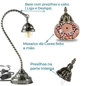 O mosaico de vidro colorido com formas por todo o espaço promove impacto visual na decoração de interiores, Com esta arte da turquia a iluminação se converte em uma verdadeira obra de arte. Vantagens: Este abajur decorativo se tornará o grande atrativo da decoração iluminando o ambiente de forma inusitada com as cores da turquia.
