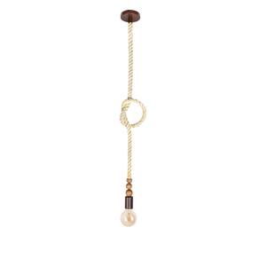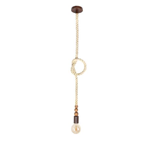 Fabricado em corda de sisal, madeira e alumínio, para lâmpada E27, atende as variações de tensão entre 127V e 220V e um ano de garantia.