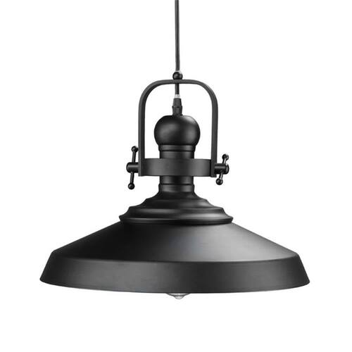 Ilumine qualquer ambiente com a sofisticação prática desta luminária pendente empilhada de abas largas. Um interior branco brilhante deixa a lâmpada LED Edison brilhar, enquanto um acabamento suave em preto fosco cria uma elegância nostálgica. Pendure esta luminária pendente de sino para completar uma vinheta de canto ou centralizar sua sala de estar com uma declaração industrial sutil. Recomenda-se a instalação por eletricista profissional. Características: acabamento: preto fosco Dossel: 1 “A x 4,75" L x 4,75" D Material: aço Lâmpada incluída: tipo ST64, 120 V, 4 W, 8000 horas. Vida útil Grande e empilhada Saída de luz: 292 lúmens Matching Canopy A tonalidade simples destaca a silhueta única O interior branco brilhante aprimora a luz. Cabo ajustável com até 5 pés de altura suspensa. Eficiente em energia, lâmpada LED de filamento aberto incluída. Lâmpada Edison brilha com luz suave e quente Listado pela UL Tipo de instalação: Com fio Especificações: Dimensões do produto: 11,5 “A x 15,5” L x 15,5” D Peso do produto: 5 libras