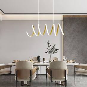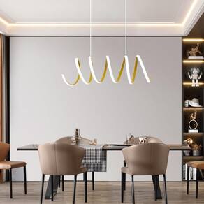 Luminária Pendente Teto Espiral Luxo Dourado 3 Cores De Luz Este lustre pendente é uma verdadeira joia luminosa que combina design contemporâneo, tecnologia avançada e elegância sofisticada. Aqui estão os detalhes: