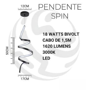A Luminária Pendente LED Espiral Spin Orbaly combina design moderno e iluminação eficiente para ambientes sofisticados. Com LED integrado de 18W, oferece 1620 lúmens de luminosidade e temperatura de cor 3000K (branco quente), criando uma atmosfera aconchegante e elegante.