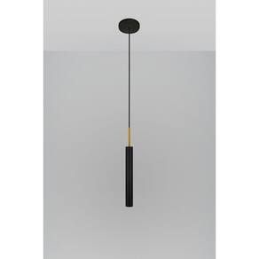 Luminária Pendente Tubo Teto Sala Quarto Preto Dourado 40Cm