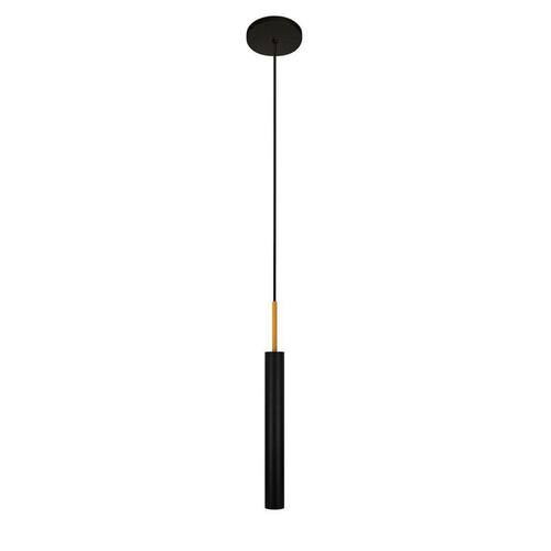 Luminária Pendente Tubo Teto Sala Quarto Preto Dourado 40Cm