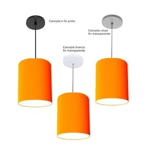 Luminária Pendente Vivare Free Lux Md-4102 Cúpula em Tecido - Cor: Laranja | Cor da Canopla: Canopla preta e fio preto