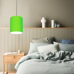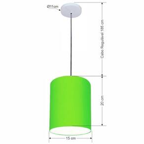 Luminária Pendente Vivare Free Lux Md-4103 Cúpula Em Tecido Verde-limão Da Canopla Canopla Branca E Fio Cristal