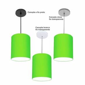 Luminária Pendente Vivare Free Lux Md-4103 Cúpula Em Tecido Cor Verde-limão Cor Da Canopla Canopla Branca E Fio Cristal