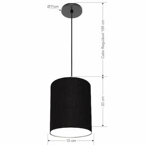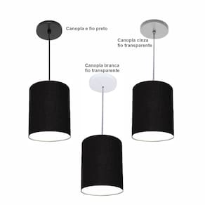 Luminária Pendente Vivare Free Lux Md-4103 Cúpula em Tecido - Cor: Preta | Cor da Canopla: Canopla preta e fio preto