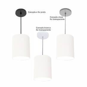 Luminária Pendente Vivare Free Lux Md-4103 Cúpula em Tecido - Cor: Branca | Cor da Canopla: Canopla cinza e fio cristal