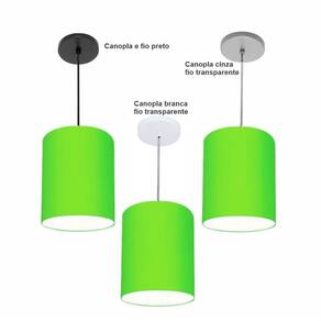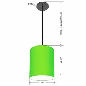 Luminária Pendente Vivare Free Lux Md-4104 Cúpula em Tecido - Cor: Verde-limão | Cor da Canopla: Canopla preta e fio preto