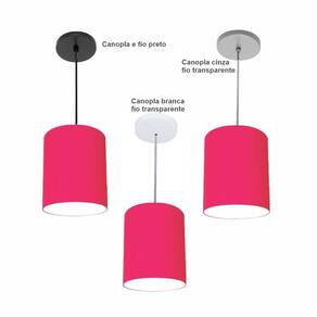 Luminária Pendente Vivare Free Lux Md-4104 Cúpula em Tecido - Cor: Pink | Cor da Canopla: Canopla preta e fio preto