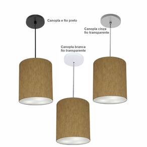 Luminária Pendente Vivare Free Lux Md-4104 Cúpula em Tecido - Cor: Cáqui | Cor da Canopla: Canopla branca e fio cristal