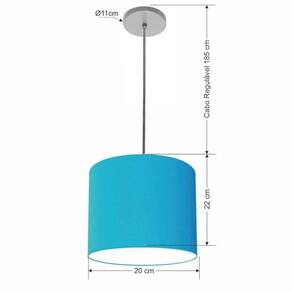 Luminária Pendente Vivare Free Lux Md-4105 Cúpula Em Tecido Azul-turquesa Da Canopla Canopla Cinza E Fio Cristal
