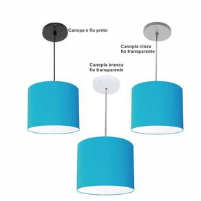 Luminária Pendente Vivare Free Lux Md-4105 Cúpula Em Tecido Cor Azul-turquesa Cor Da Canopla Canopla Cinza E Fio Cristal
