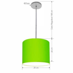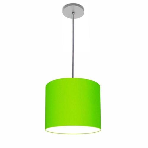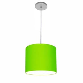 Luminária Pendente Vivare Free Lux Md-4105 Cúpula Em Tecido Cor Verde-limão Cor Da Canopla Canopla Cinza E Fio Cristal