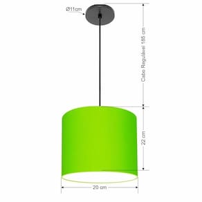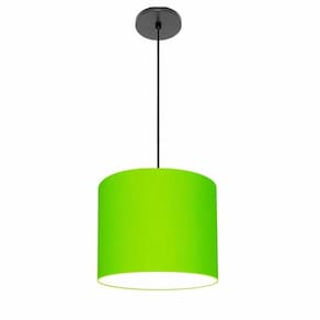 Luminária Pendente Vivare Free Lux Md-4105 Cúpula Em Tecido Verde-limão Da Canopla Canopla Preta E Fio Preto