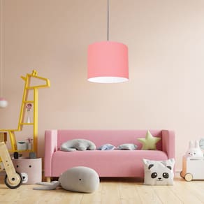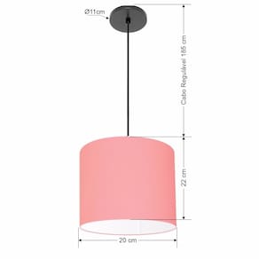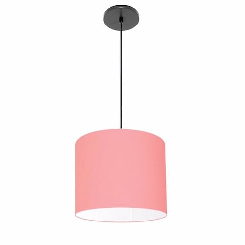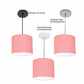 Luminária Pendente Vivare Free Lux Md-4105 Cúpula em Tecido - Cor: Rosa-tela | Cor da Canopla: Canopla preta e fio preto
