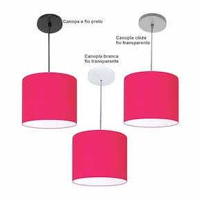 Luminária Pendente Vivare Free Lux Md-4105 Cúpula em Tecido - Cor: Pink | Cor da Canopla: Canopla cinza e fio cristal