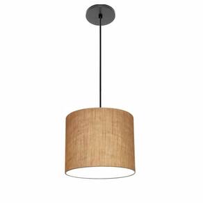 Luminária Pendente Vivare Free Lux Md-4105 Cúpula em Tecido - Cor: Palha | Cor da Canopla: Canopla preta e fio preto