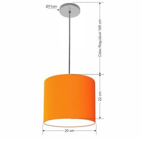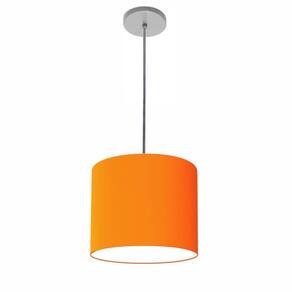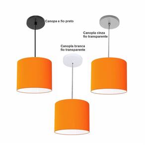 Luminária Pendente Vivare Free Lux Md-4105 Cúpula em Tecido - Cor: Laranja | Cor da Canopla: Canopla cinza e fio cristal