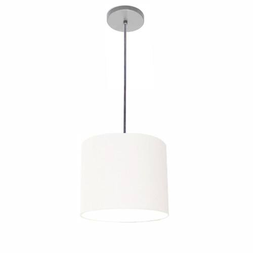Luminária Pendente Vivare Free Lux Md-4105 Cúpula em Tecido - Cor: Branca | Cor da Canopla: Canopla cinza e fio cristal