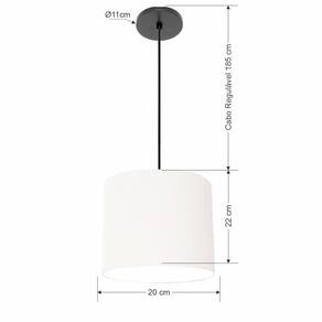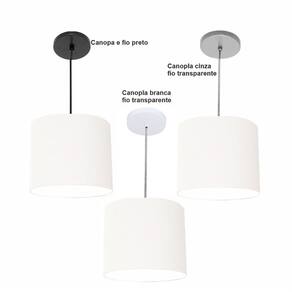 Luminária Pendente Vivare Free Lux Md-4105 Cúpula em Tecido - Cor: Branca | Cor da Canopla: Canopla preta e fio preto