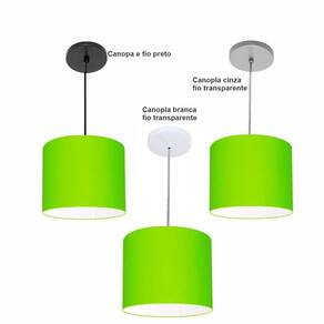 Luminária Pendente Vivare Free Lux Md-4106 Cúpula Em Tecido Verde-limão Da Canopla Canopla Preta E Fio Preto