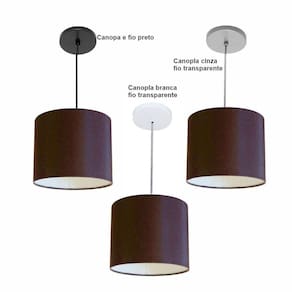 Luminária Pendente Vivare Free Lux Md-4107 Cúpula Em Tecido 25x20cm Cor Café Cor Da Canopla Canopla Cinza E Fio Cristal