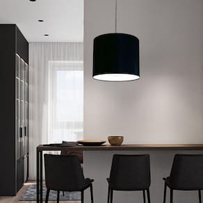 Pendente Moderno Indicado para decoração área interna, como mesas, sala de estar, sala de jantar, suíte, quartos, corredor, hall, mezanino, escadas, churrasqueira, lareira, área de circulação, lojas, comércios, restaurante, varanda, balcão, com opção de cor de canopla em preta, branca e cinza