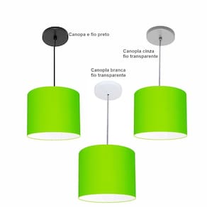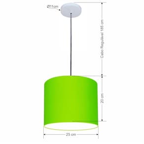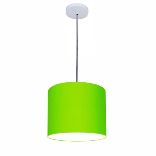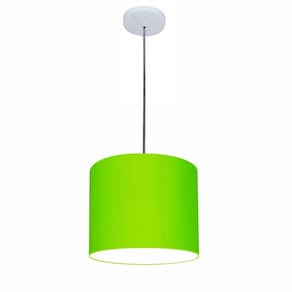 Luminária Pendente Vivare Free Lux Md-4107 Cúpula em Tecido - Cor: Verde-limão | Cor da Canopla: Canopla branca e fio cristal