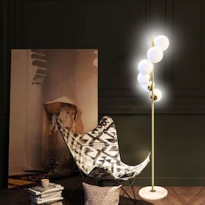 Luminária Piso Chão 162cm Jabuticaba Dourada 6 Globos Vidro Mármore Gimpo KJTD-713-GOLD Luminária de Chão 162cm Jabuticaba 6 Globos Gimpo KJTD-713-GOLD. Base Mármore. Estrutura Metálica Dourada. Globos de Vidro 13cm. Fiação embutida. 6 Soquetes E27, até 60 Watts cada. A Luminária de Chão Piso Coluna Pedestal KJTD-713-GOLD da Gimpo é charmosa e sofisticada. Preenche o ambiente com uma atmosfera de organicidade e leveza. É a solução ideal para os mais distintos projetos de iluminação. Com um design orgânico e contemporâneo, inspirado na beleza da fauna e das árvores Jabuticabeiras do Brasil, os frutos, as jabuticabas, em fusão com a arte, são expressadas pelos 6 globos de vidros brancos ao longo da estrutura metálica dourada. Se destacam, dessa maneira, por um desenho autêntico e diferenciado. Une beleza e funcionalidade. Natureza e modernidade. Uma peça delicada e funcional para iluminar ambientes e transmitir bem-estar com iluminação de qualidade. Mede 162cm de altura x 30cm de largura. A base é em mármore branco com 28cm de diâmetro, pesa 3,8kg e garante o suporte necessário para dar firmeza e estabilidade. Conta também com antiderrapante na sua porção inferior para maior segurança e evitar riscos no chão. A estrutura metálica é robusta e tem 2cm de espessura. Ao todo são 6 globos de vidro brancos com 13cm de diâmetro e os 6 soquetes já instalados são E27 até 60 Watts cada . Por conta dos globos serem brancos foscos leitosos, a luz é distribuída uniformemente, de modo suave e agradável aos olhos, e cria um ambiente aconchegante e confortável. O fio é embutido na coluna e sai próximo à base. A cor da fiação é preta e tem 260cm de comprimento a partir da base. O é de acionamento no pé, bastando pisar para ligar ou desligar. A instalação é simples e dispensa qualquer ferramenta, necessitando somente rosquear as peças, manualmente, umas às outras. Perfeita para salas, locais de estudo, escritórios, quartos, cabeceiras, banheiros, ao lado de sofás, estúdios, clínicas, home offices, restaurantes, bares, cafés, salões, entre outros espaços. Adapta a uma variedade de estilos, desde o minimalista e contemporâneo até o retrô, industrial, rústico, escandinavo, Art Nouveau, high tech, nórdico, urbano e étnico. A escolha ideal para quem busca soluções de iluminação elegantes e diferenciadas. Luminárias Gimpo. Elementos de beleza que transformam decorações. Especificações: 1 Luminária Piso Chão 162cm Jabuticaba 6 Globos Gimpo KJTD-713-GOLD. Medidas da luminária: 162cm altura x 30cm largura. Cor da estrutura: dourado. Material da estrutura: metal. Espessura da estrutura: 2cm. Coluna da luminária: 2 hastes. Medida de cada haste: 80cm. Material do globo: vidro. Total de globos: 6 unidades. Cor do globo: branco fosco leitoso. Medida do globo: 13cm diâmetro. Abertura inferior do globo: 6,5cm. Material da base: mármore. Cor da base: branca. Medidas da base: 28cm diâmetro x 2cm altura. Peso da base: 3,8kg. Soquetes: E27 até 60 Watts cada . Total de soquetes: 6 já instalados . Fiação elétrica: 2,60m. de pé a 1,60m da base. Fio embutido. Saída do fio a 5cm da base. Cor do fio: preto. Plugue: tomada padrão brasileiro 2 pinos. Corrente elétrica: Bivolt 110v / 220v . Se usar lâmpadas 110v, ligar rede 110v. Caso lâmpadas 220v, conectar à energia 220v. Se lâmpadas bivolt, aceita ambas voltagens. Peso total: 6,55kg. Medidas da caixa: 98 x 33 x 33xm. Modelo: KJTD-713-GOLD. EAN: 7898680304401. : 3 Meses. Marca: Gimpo.