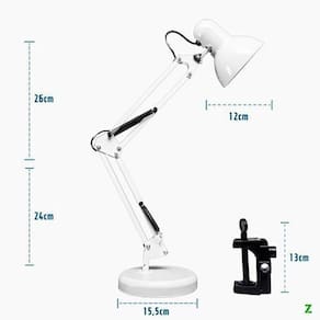 Luminaria pixar articulada abajur de mesa garra e base Cor do abajur: vermelho Cor da base: branco Luminária de mesa led articulável é uma luminária de mesa mágica que definitivamente ilumina em qualquer lugar que você desejar, girando com facilidade para cima, para baixo e para os lados. Além disso, é possível colocá-la em cima de uma mesa, bem como de prender em uma prateleira ou cabeceira da cama. Seu design elegante trará muita beleza e requinte ao ambiente. Flexível e estável: Suas articulações permitem ajustar facilmente para onde a luz aponta. A base ponderada é mais que suficiente para manter a luminária firme. on / off: Fácil de controlar, basta pressionar o botão liga/desliga no cabo de alimentação. Material qualificado: Material metálico qualificado no corpo e na cúpula da luminária. Uma decoração durável e elegante à sua disposição. Garra e base: Além da base, acompanha uma garra em c para dispor em diferentes locais e trazer uma economia de espaço em sua bancada ou mesa. A garra é do tipo parafuso, e não do tipo tensão, o que evita deixar marcas de mordida na mesa. Base pequena: a base é pequena o suficiente para produzir um espaço mínimo em sua mesa ou cabeceira, proporcionando um espaço muito mais limpo. Não acompanha lâmpada Especificações técnicas: Frequência: 50/60hz Voltagem: 110/220v - bivolt Soquete: e27 não acompanha lâmpada Suporte: base e garra Peso aproximado: 1,4kg Cabo: 1,5m Observe as especificações do produto Produto com Marca: Não Informado