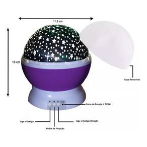 Contém: 1 Luminária Projetor 360º Galaxia Star Master Base Roxa