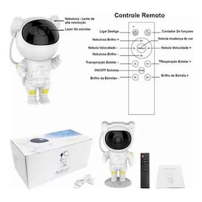 Luminaria Projetor Astronauta Galaxia Estrelas Usb Cor Da