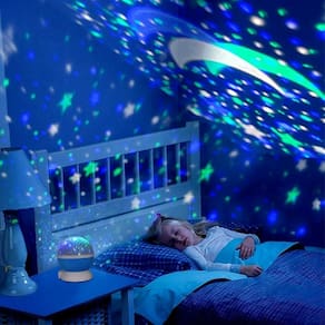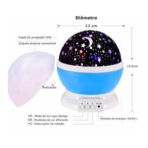 A luminária projetora de estrelas da star master enche seu quarto de encanto e magia possui 3 modos de iluminação: parada, giratória e modo lâmpada, além de contar com 6 cores de luz alternadas.