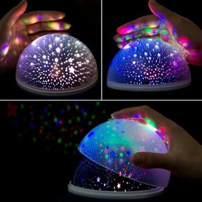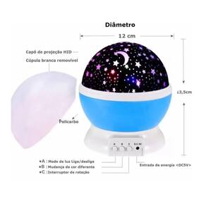 A luminária projetora de estrelas da star master enche seu quarto de encanto e magia possui 3 modos de iluminação: parada, giratória e modo lâmpada, além de contar com 6 cores de luz alternadas.