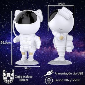 CONTÉM: - 01 Lâmpada de projeção de astronauta - 01 Cabo de alimentação USB - 01 Controle remoto - 01 Manual Marca: Luminária, Abajur, Astronauta Ean: 7904414980091
