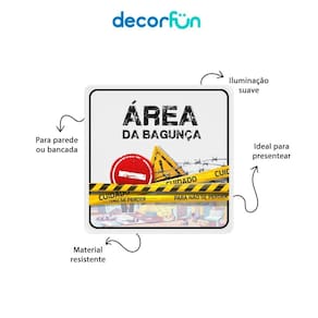 Adicione humor e estilo à sua decoração com o Slim Box “Área da Bagunça”, o quadrinho iluminado perfeito para deixar qualquer espaço mais divertido e acolhedor. Ideal para paredes ou bancadas, ele combina iluminação suave com design criativo, sendo um presente divertido e funcional.