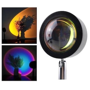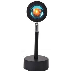 Luminária que projeta por do sol Características: 1. Pôr do sol sunset / pôr do sol vermelho sunset red / sol sun / lâmpada de projeção do arco-íris rainbow , experiência visual de sonho 2. Quanto maior a distância, maior a projeção, pode ser projetada na parede ou no teto 3. A luz emite uma luz circular colorida impressionante nas paredes, teto e chão 4. O ângulo do suporte da lâmpada pode ser ajustado e girado 360 graus 5. Fonte de alimentação 5v 5w usb, cabo com interruptor, cabo usb de 1 metro de comprimento.